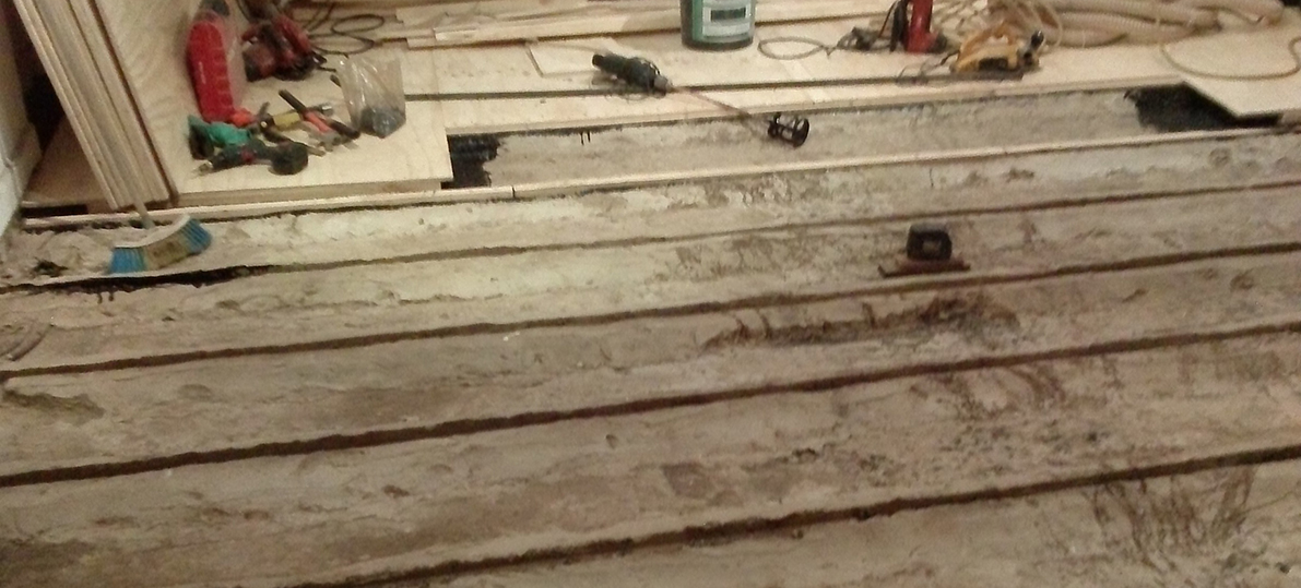 Los pisos de las casas antiguas están instalados sobre durmientes con espacio de ventilación. No recomendamos llenar el espacio con cemento para poner el piso a menos que decida poner baldosín.